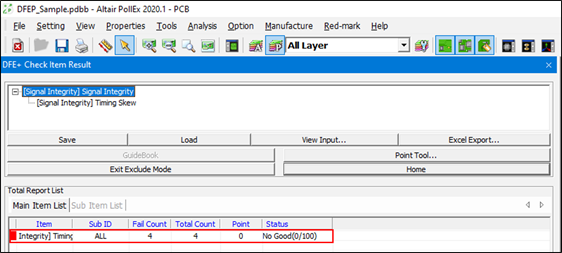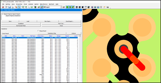 PollEx DFE+ is one of many PollEx tool sets and it checks electrical validity of PCB design. It is a combination of a rule check tool and an analysis tool. The DFE+ uses the SI, PI, and thermal analysis engine to examine the result of the analysis to see if it meets the target electrical value.