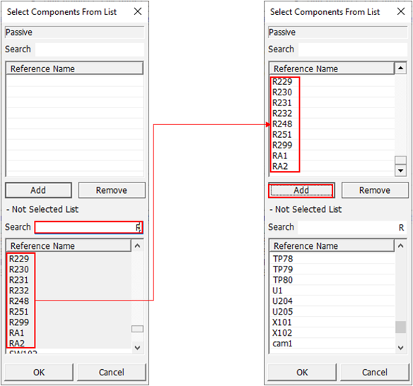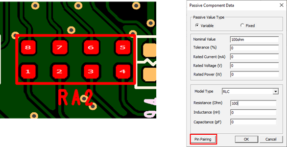 The passive component RLC values are automatically extracted from PDBB data, if the value property was correctly assigned in the PDBB database. The passive value types of the passive component are classified into variable and fixed.