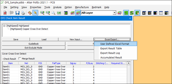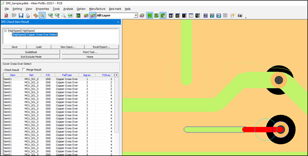 PollEx DFE is one of many PollEx toolsets and it checks electrical validity of PCB design. PollEx DFE can be launched within PollEx PCB and it helps designers to reduce design errors that may be detected later in electrical test processes. The PollEx DFE results can be outputted to a well-formatted MS/Excel spreadsheet. With a vast variety of user-friendly electrical rule checking options, PollEx DFE helps you to reduce cost and time to produce good working PCBs fast.