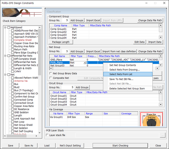 - In the Net Group Type section, double-click Net Group01 and change the group name to GND_Plane by double-clicking the Name column.