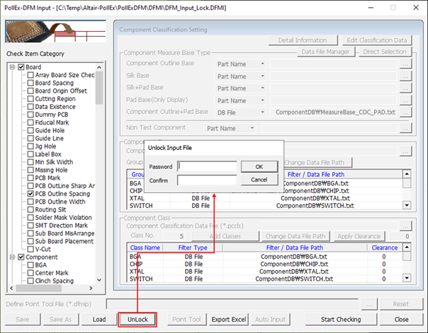 1. In the PollEx-DFM Input dialog, click Unlock to load a locked DFM input file.