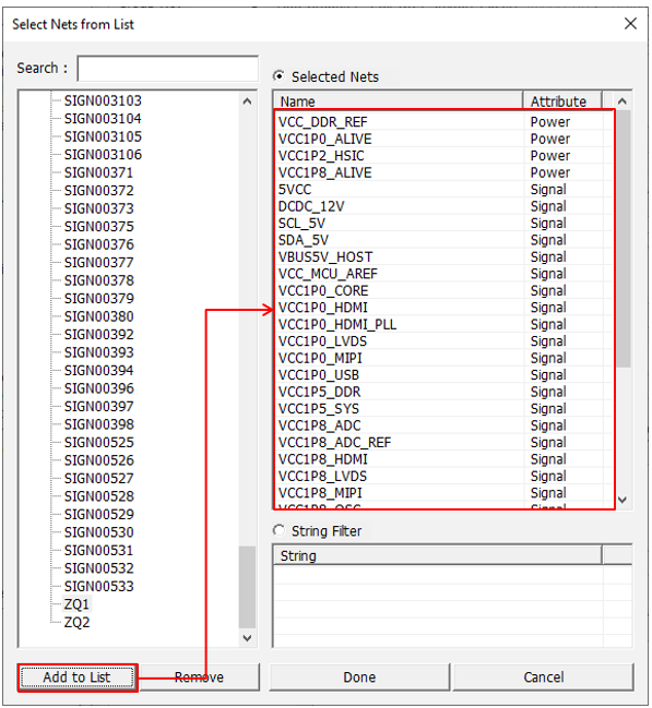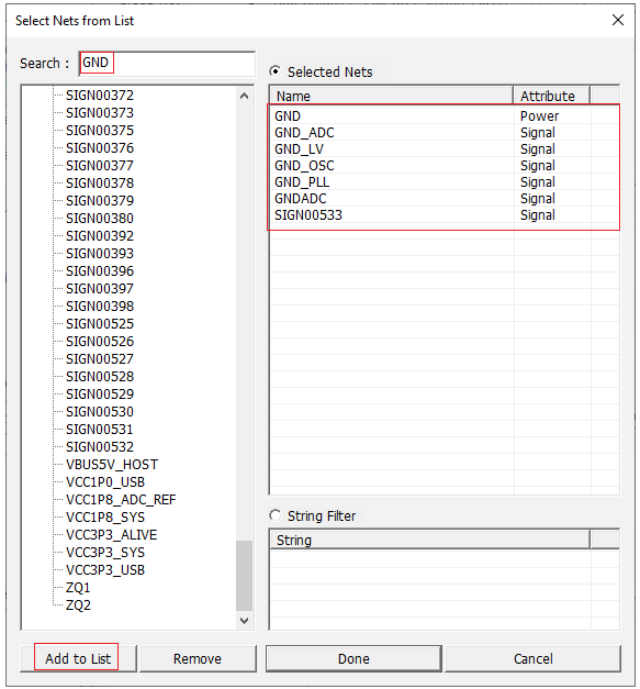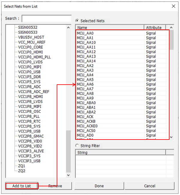 - Select the following nets from the net list: VCC_MCU_AREF, VCC_DDR_REF, and VCC1P8_ADC_REF.