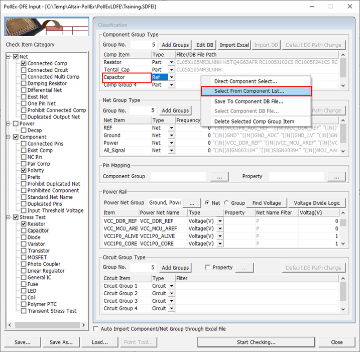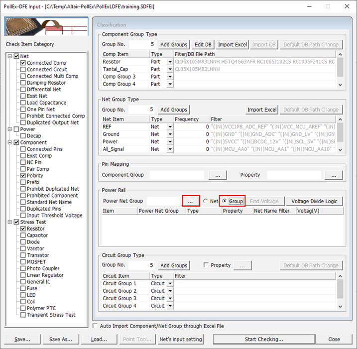 The Select Group dialog opens. You can assign component group that will be considered as open state during searching voltage rail.