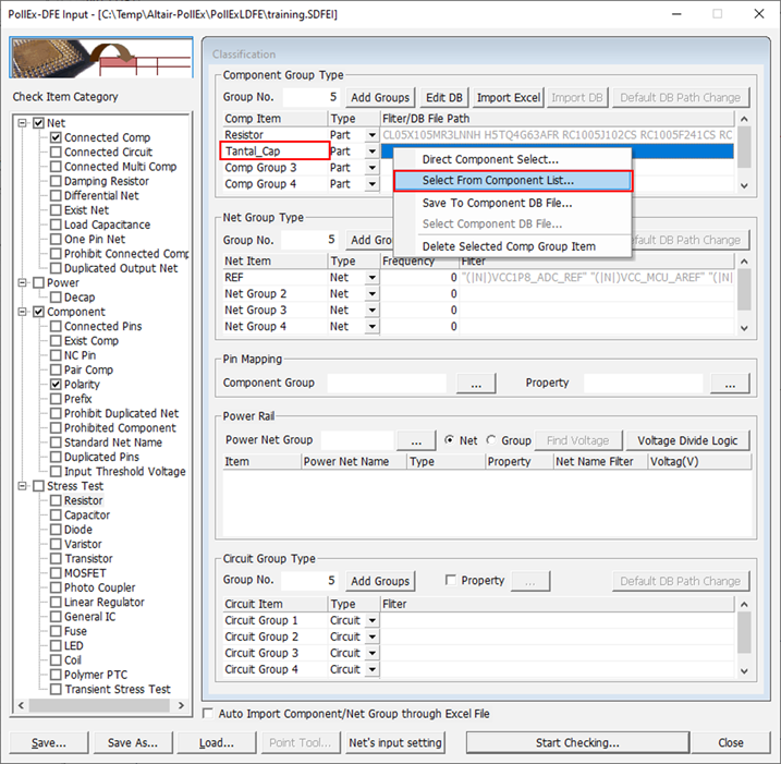 PollEx Logic DFE is a toolset which can check electrical validity and standardizing of schematic design. PollEx Logic DFE is an option module of PollEx Logic and it helps designers to reduce recursive design errors that might be detected in the post design processes. Using standard net names in Schematic makes PCB CAD work much easier. You can use PollEx Logic DFE to set a standard net naming convention. The results of PollEx Logic DFE can be exported in an MS/Excel spreadsheet.