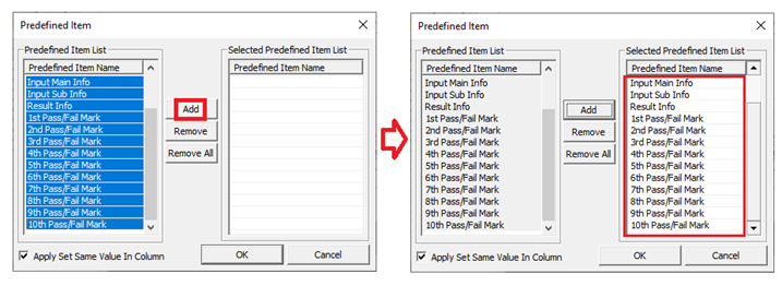 Figure 13. - Select Part_CLASS from the drop-down list of the Title column and enable the checkbox.