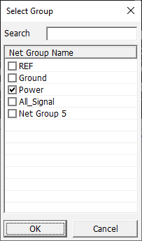 The Select Group dialog opens. You can assign component group that will be considered as short state during searching power rail.