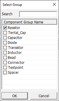 - In the Select Group dialog, select the Resistor component group and click OK.