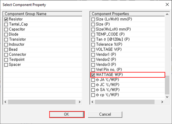 Figure 83. - Enable the Resistor and WATTAGE W(P) checkboxes and click OK.