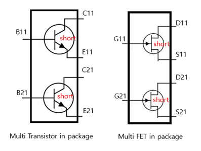 This means that we will define pin-connection information for multi-pin component by signal name. For example, for the following multi-pin component, the short pin pairs are C11-E11, C21-E21, D11-S11, and D21-S21.