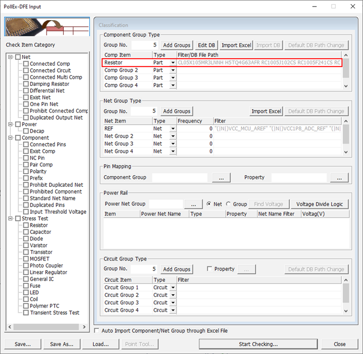 Figure 72. - In the Component Group Name section, enable the Resistor checkbox.
