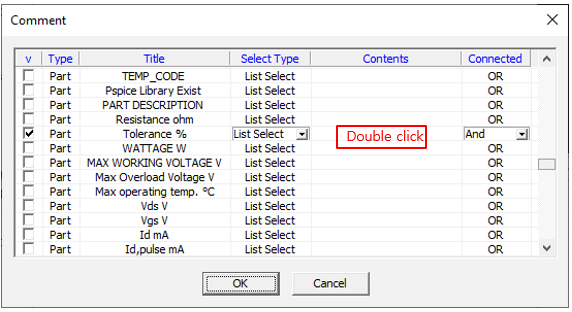 Under Part Comment Contents, select RESISTOR and