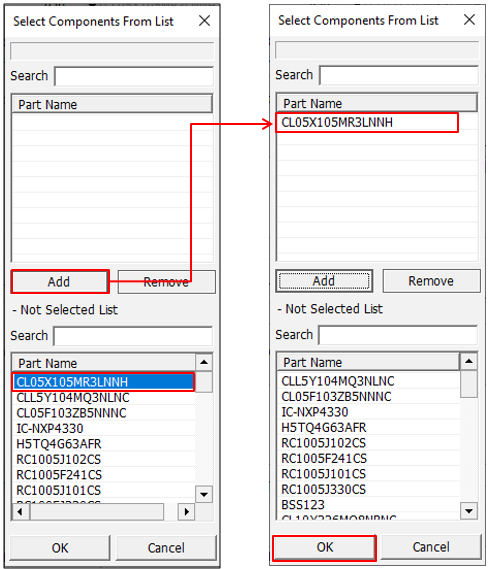 Figure 89. - Enable the Resistor, Capacitor, Inductor, and Bead checkboxes and click OK.
