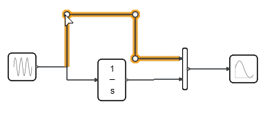 8. Hold the Alt key and click the elbow of the link between the SineWaveGenerator and Integral blocks.