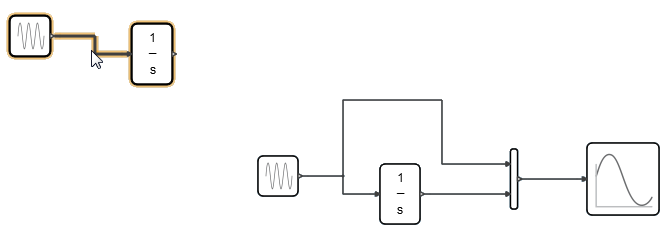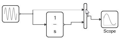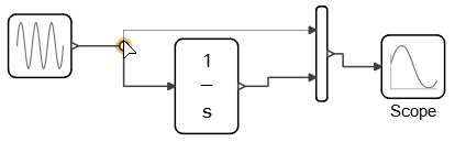 7. Select the Integral block. Hold and drag your mouse up slightly to straighten the crooked link between the Integral and Mux blocks.
