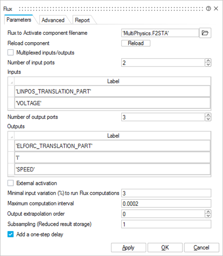 speed through the Flux block in the coupling component. In Activate, the Flux