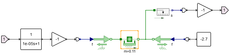 The bright green super block, MECHANICS, includes Modelica blocks to simulate