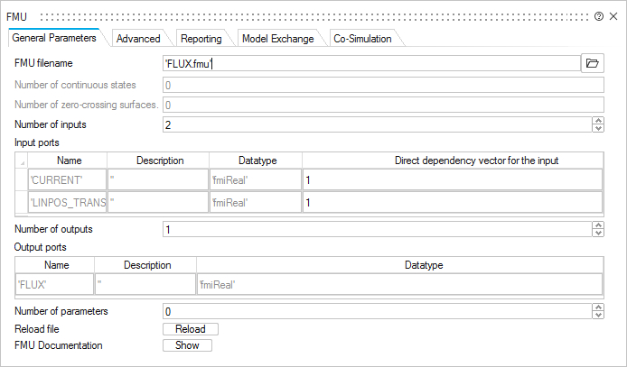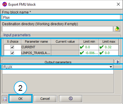 Position and Flux are exported as Functional Mock-up Unit files. A second