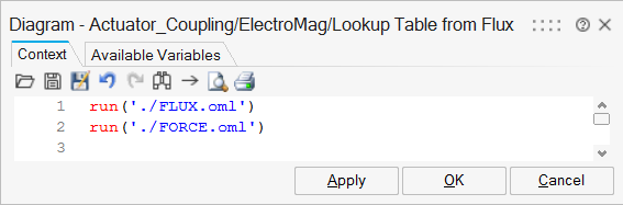 The super block Actuator_Coupling > ElectroMag > Lookup Table from Flux includes a context to read in the results exported from a