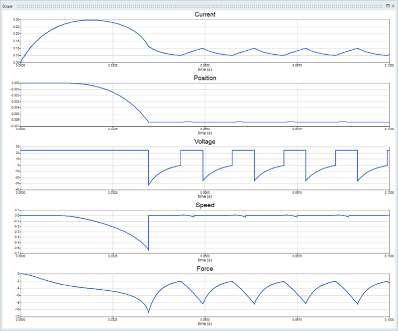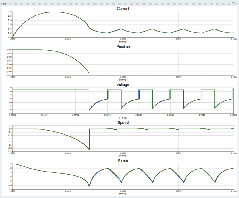is used in Activate. OML Method Results with the evolution of current, position, speed and force as