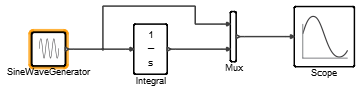 magnitude sine wave. To fit the Scope window to the plot data, middle-mouse
