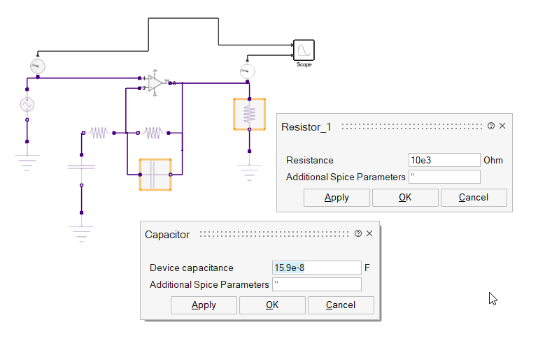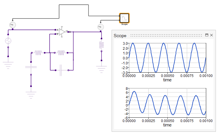 The opamp Spice library contains the following block definition and schematic used in the circuit models.