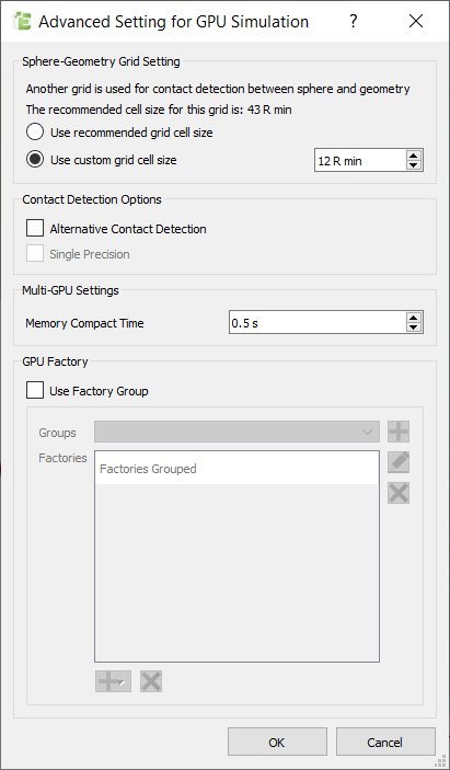 Enable/Disable the use of factory groups in the GPU simulation. -