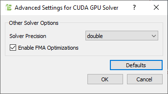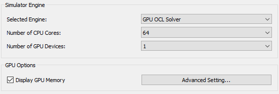 When selecting the GPU solver engine, the GPU Advanced settings are available: