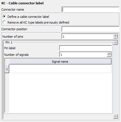 Figure 1. The KC - Cable connector label dialog.