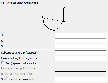 Often modelling the geometry of an arc requires shorter segments than those used for straight wires. Thus the maximum segment length specified with the IP card can be overridden along the arc by specifying a value in the Maximum length of segments text box.