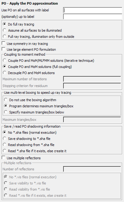 Note that the ray tracing options and the number of reflections can be specified on a per label basis, by using multiple PO cards. All other parameters can only be specified once. For the global parameters, the values of the last PO card will be used.
