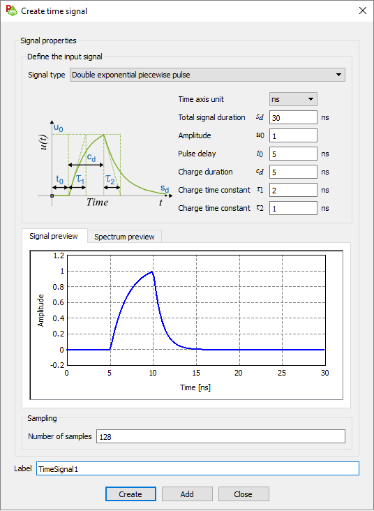 Create a time signal to analyse frequency domain results in the time domain. A list