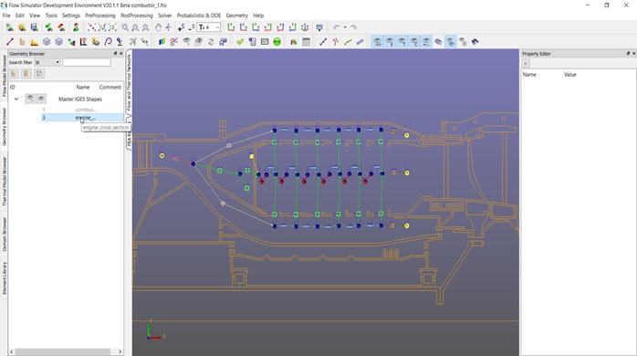 This options allows users to Load CAD model to Graphical Use Interface. Flow Simulator allows users to overlay/integrate the 3D digital CAD with the “.flo” models. Users can import geometry information in the “.iges/.stp” form. This will help in visualizing the engineering problem in greater detail. It allows better 3D model building experience by mapping of elements & chambers to iges Vertices. It also allows the user to import CAD in the “.iges/.stp” form & and creates elements automatically using all geometrical information of diameter, length, angle to updates input automatically.