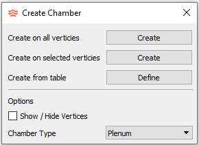 - Creates a chamber at the selected vertices. Click Create to display the vertices and select them. To end the selection mode for this option, close the window or Create again.