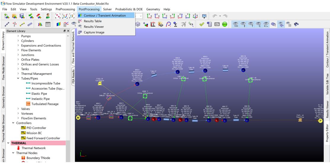 Use Flow Simulator's Contour and Transient Animation options to see the results of your model analysis on the Flow model as colored contours, or as a time animation for transient analysis. Use this tool to visualize common model inputs like restriction diameter or length, and to quickly check model inputs.