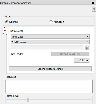 The Coloring option is located in the Contour/Transient Animation dialog. You can colorize either Initial Data or Result Data in Flow Simulator.