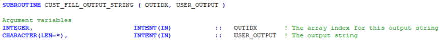 CALL CUST_FILL_OUTPUT_STRING (IDX+1, USER_OUTPUT)The file custom_param_mod.f90 contains parameters such as ELEMENT_TYPE and CUST_PRP_P.
