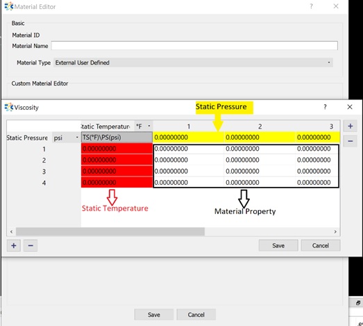 Use the External User Defined option to define your own material, with all required fluid properties provided. The Material ID starts with 1000 for External User Defined materials, and both the ID and the given name are printed in the .flo file. Thus, you can distinguish the user-defined materials in the file.