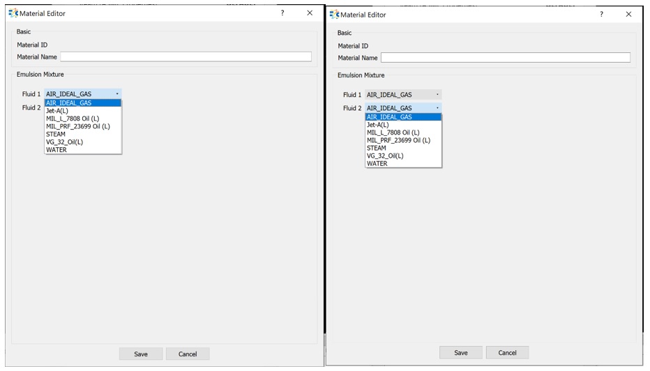 Select one of these materials, and all fluid and thermal properties (density, viscosity, specific heat, conductivity, and so on) are used from the NASA CEA database or from the CoolProp database, based on your selection.