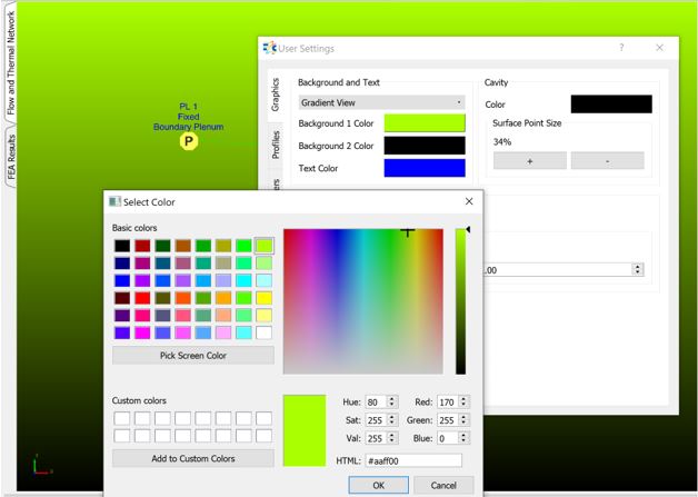 Users can configure Flow and Thermal Network background and text colours, text and connection line sizes and size and colour of cavity.