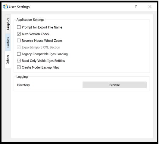 User Settings allow you to configure certain aspects of Flow Simulator specific to Graphics, Profiles and Application Settings & Logging Directory. User Settings are presented under 3 headings: