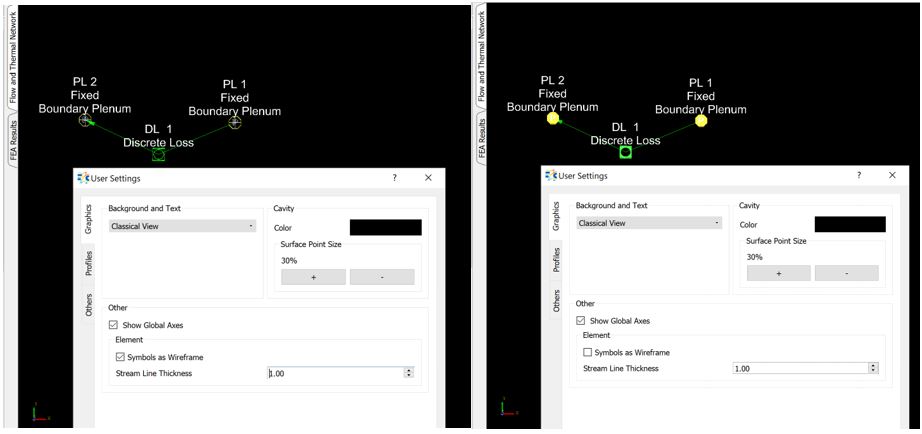 Global Axes: Users can hide or show the global Axes on the Flow and Thermal Network screen.