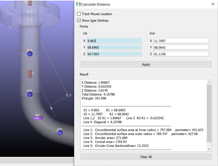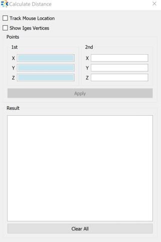 2. Show Iges Vertices: If there is a loaded CAD model, it is possible to select 2 of the these points to measure the distance between them. The Iges vertices can only be seen when this option is enables.