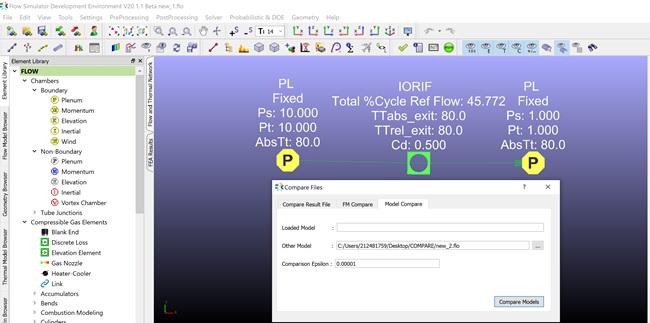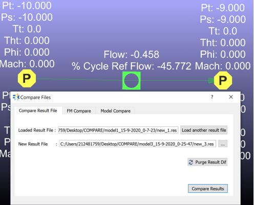 Flow Simulator enables users to compare the two different models as well as two different results. Therefore, users can easily see the differences between the models/results from Flow Simulator window on the model objects directly.
