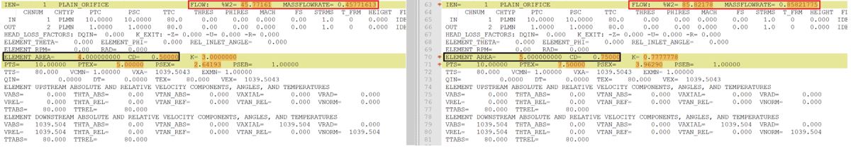 Example 1: The area and the Cd of the Orifice element changed. The difference between the two results is in the flow rate.