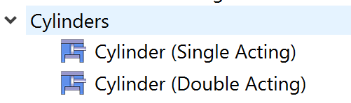 There are two Cylinder subtypes under “Compressible Gas Elements” and “Incompressible Liquid Elements” sections in Flow Simulator.