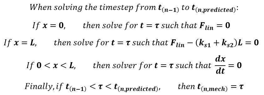 Finally, the “Off” option does not shorten either mechanical or fluid timestep. However, it does use a numerical trick to prevent spurious oscillations that occur when you require the piston to leave the end at the “wrong time”. It uses a smoothing option, described in detail in the following section, but only for the time-steps where the piston becomes unstuck.