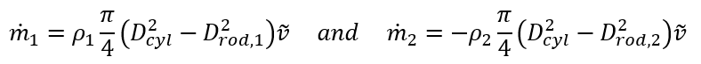 In other words, Flow Simulator uses the exact solution for velocity to calculate mass flow rate when the piston is not near the end positions. However, when the piston becomes stuck or unstuck from the end position, Flow Simulator uses a conservative differencing formula. This makes sure the rest of fluid circuit experiences the correct amount of mass release or mass removal by the cylinder.