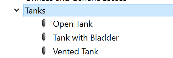 2. Tank with Bladder is a tank with some trapped gas. The gas cannot escape the tank. Attached elements carry liquid into and out of the tank