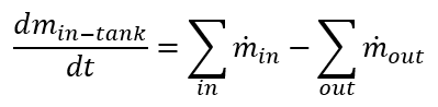 For the open tank and the tank with a bladder the only and are the liquid elements entering and leaving the tank. For the tank with a vent the and are for liquid and gas elements so the mass conservation equation is satisfied for both. This derivative is solved using backward differencing method.