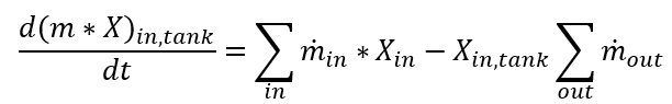 4. Fluid species: The fluid species mass fraction in the tank are determined by the species in the tank and the species entering the tank.
